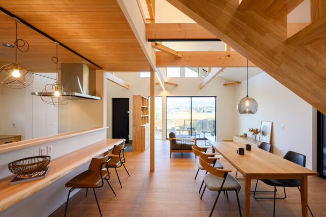 リビングは吹き抜けでつながり、光と風がめぐる心地よい空間に仕上がりました。