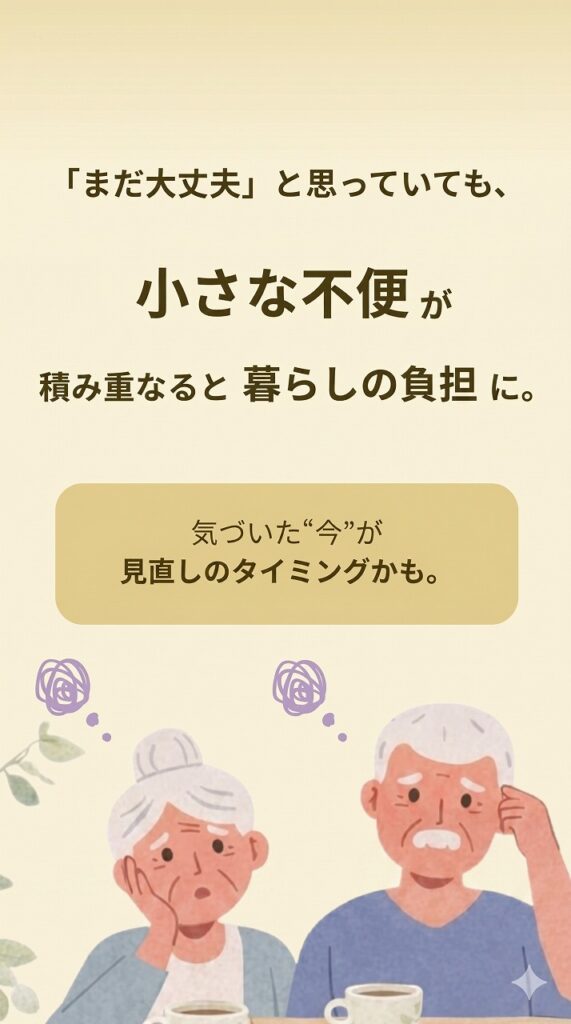だからこそ、あなたがご実家の変化に気づいた“今”が、暮らしを見直す大切なタイミングかもしれません。
