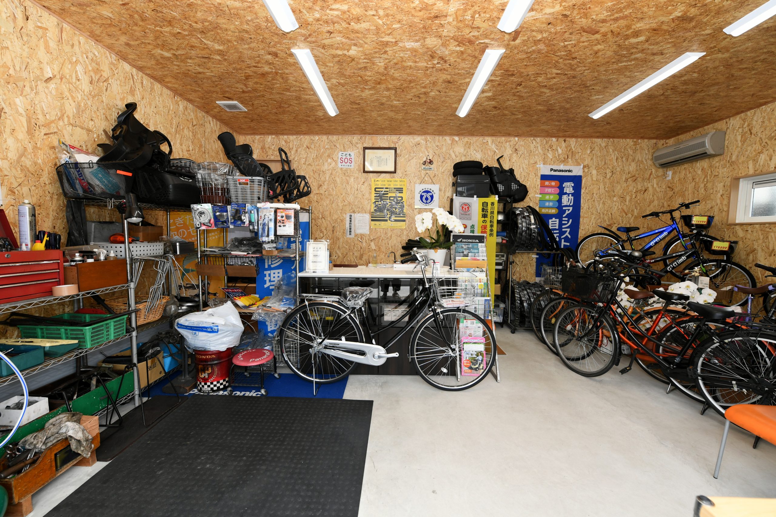 自転車修理などの作業場としても機能的。