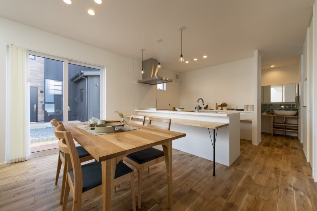 多機能なキッチンカウンターは、朝の軽食や子供の勉強、料理の受け渡しなど、さまざまな用途に対応できる優れたスペースです。