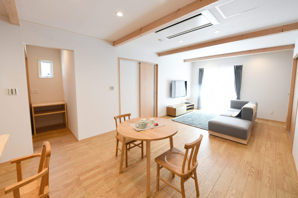キッチンとリビングの両サイドに窓を配し、風通しが良く湿気や匂いがこもりにくい設計です。開放感ある空間が、家族とのコミュニケーションをスムーズにします。
