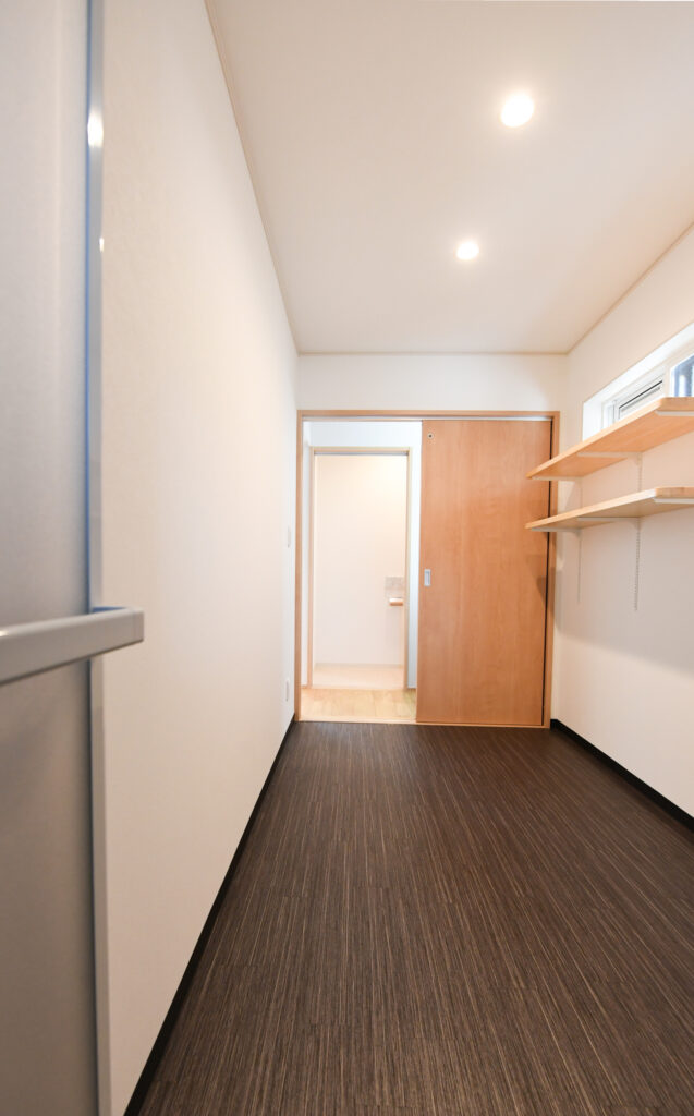 玄関横には、シューズクロークを完備し、実用性とスタイリッシュさを兼ね備えています。