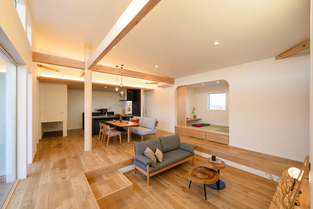 お問い合わせフォーム お気に入りに登録 敷地面積:104坪 建築面積:52坪 延床面積:48坪 家族構成:3 基本情報 #スキップフロア #スタディスペース #和室 #家事ラク導線 #表し梁,化粧梁 #造作家具 #ナチュラル この家を建てた住宅会社 会社名 ㈱富山総合建築 所在地 本社 〒769-1507 香川県三豊市豊中町岡本520-1 高松モデルハウス(事務所) 〒761-0303 香川県高松市六条町934-10 TEL.087-802-3908 会社の強み デザイン 高性能(省エネ) 高気密 高断熱 企業の詳細情報・口コミ情報はこちら この会社の他の住宅実例を見る 帰るとホッとするイチゴ農家の家 2026.03.13 三角の屋根と窓が主役の開放感と光が満ちる平屋 2026.02.19 「ちょうどいい」を叶えた、27坪の心地よい平屋 2026.01.30 築100年 古民家リノベーション 2026.01.16